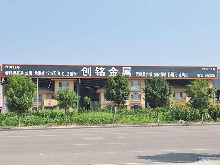 濰坊創銘金屬制品有限公司位于山東臨朐江北物流城,地理位置好。是本地區一家集鍍鋅板卷材、鍍鋅板開平、縱剪、樓層承重板、12米天溝、C、Z型鋼、彩鋼瓦、巖棉復合板、剪板折彎等產品及板材批發、零售、加工、配送的公司。